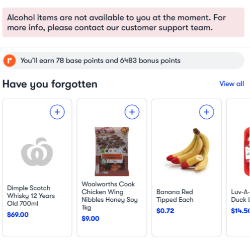 If you see the notification below, it means your account has been self-excluded from ordering alcohol.